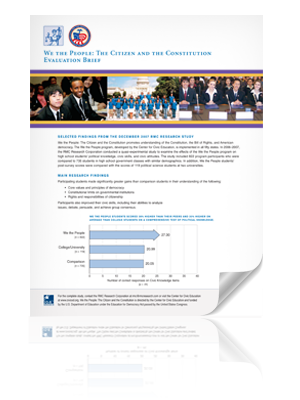 This site is brought to you by the Center for Civic Education. The Center's mission is to promote an enlightened and responsible citizenry committed to democratic principles and actively engaged in the practice of democracy. The Center has reached more than 30 million students and their teachers since 1965. Learn more.
